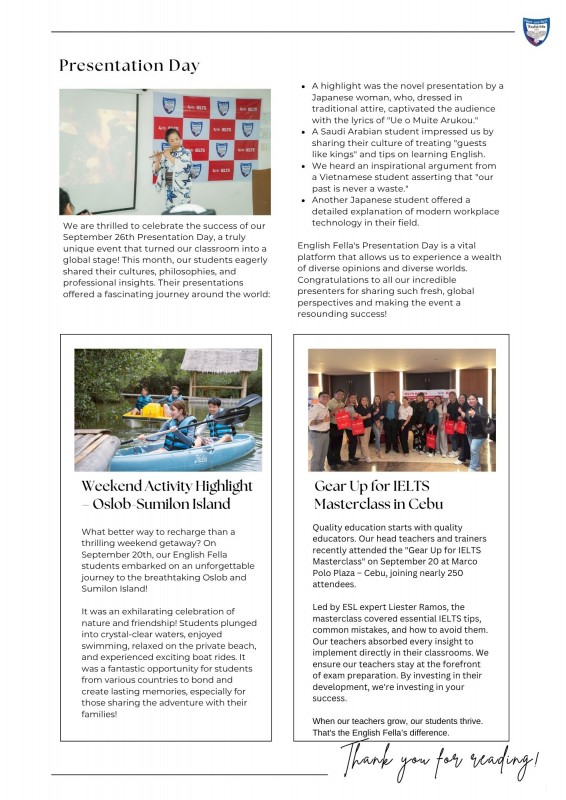 "English Fella is more than just a language school; it's a platform that provides both cultural understanding and practical academic achievement. Our commitment to student success continues. Thank you for reading!"